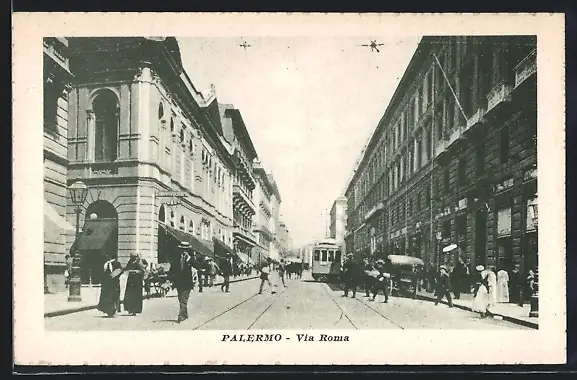 AK Palermo, Via Roma, Strassenbahn
