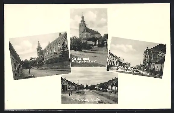 AK Palterndorf, Hauptstrasse mit Kaufhaus Prinz, Kirche