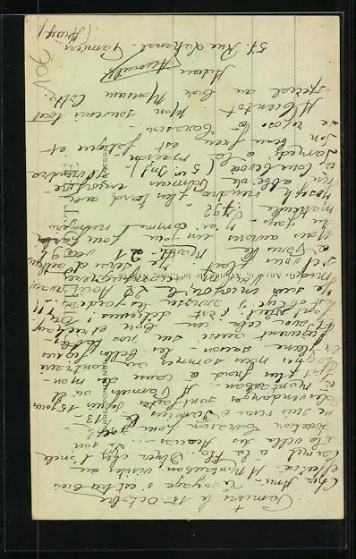 Personenbezogene Daten auf der Rückseite der Karte wurden durch blauen Textmarker unkenntlich gemacht. Die blauen Stellen sind auf die Vorderseite durchgeweicht und wirken sich negativ auf das Postkartenfoto aus