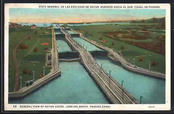 AK Panama Canal, General View of Gatun Locks, Looking South