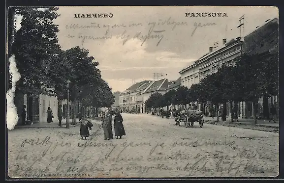 AK Pancsova, Strassenpartie mit Anwohnern