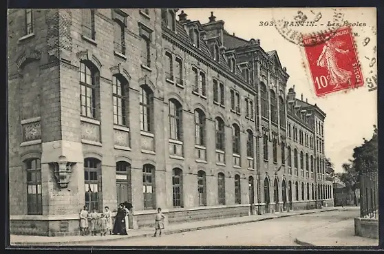 AK Pantin, Les Écoles et élèves devant un bâtiment historique