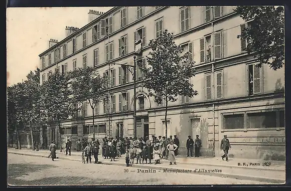 AK Pantin, Manufacture d`Allumettes et groupe d`enfants devant le bâtiment