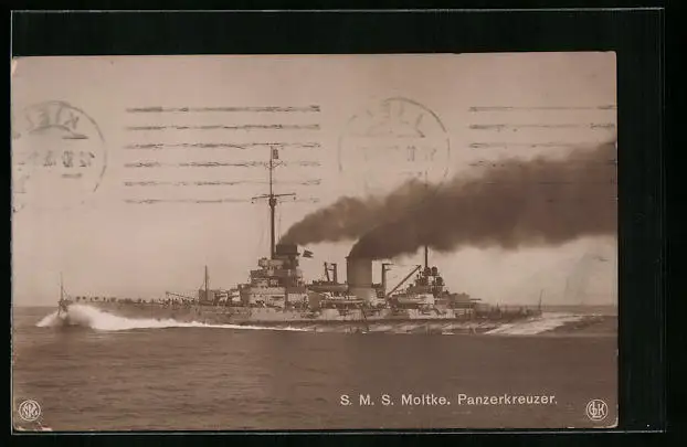 AK Panzerkreuzer S. M. S. Moltke gibt Volldampf
