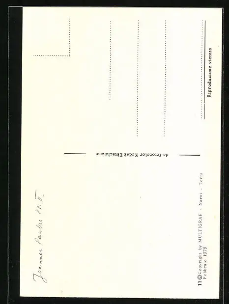 Personenbezogene Daten auf der Rückseite der Karte wurden durch blauen Textmarker unkenntlich gemacht. Die blauen Stellen sind auf die Vorderseite durchgeweicht und wirken sich negativ auf das Postkartenfoto aus