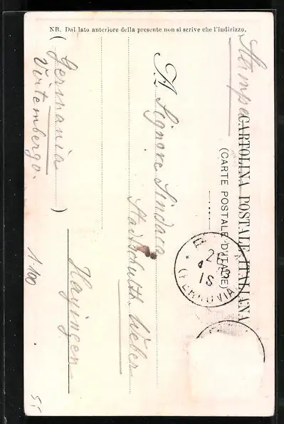 alte Ansichtskarte, gelaufen, Briefmarke entfernt, rückseitig Oberflächenschaden, Stempelspur, guter Zustand