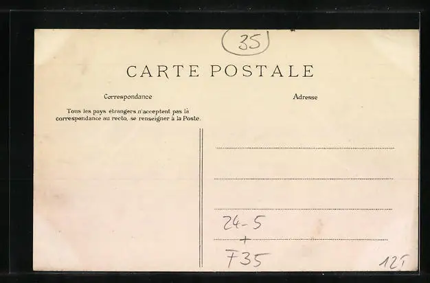 Personenbezogene Daten auf der Rückseite der Karte wurden durch blauen Textmarker unkenntlich gemacht. Die blauen Stellen sind auf die Vorderseite durchgeweicht und wirken sich negativ auf das Postkartenfoto aus