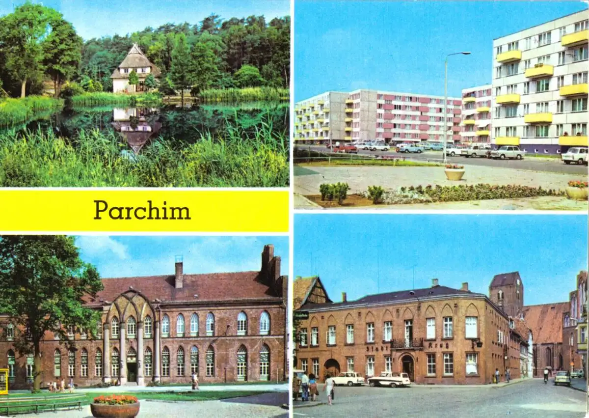 AnsichtskarteParchim Meckl.vier Abb. - Kinderkurheim "Markower Mühle", Leninstr., Rathaus, Waagestr.