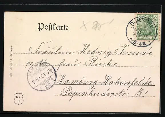 alte Ansichtskarte, gelaufen 1905, guter Zustand