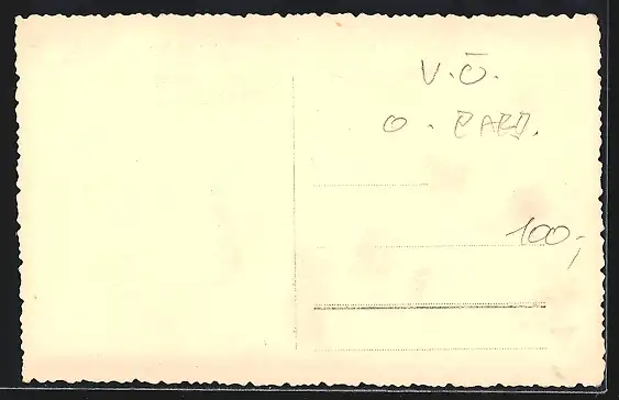 Personenbezogene Daten auf der Rückseite der Karte wurden durch blauen Textmarker unkenntlich gemacht. Die blauen Stellen sind auf die Vorderseite durchgeweicht und wirken sich negativ auf das Postkartenfoto aus