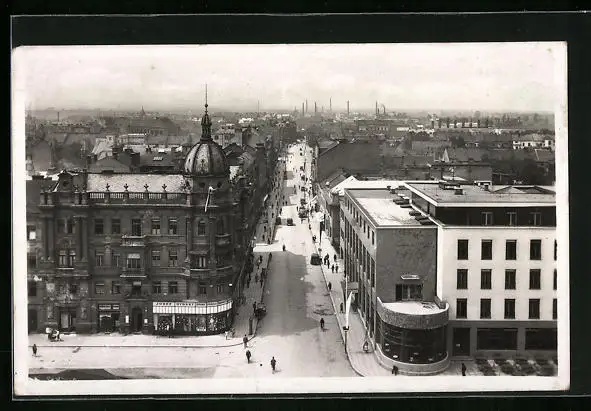 AK Pardubice, Strassenpartie aus der Vogelschau