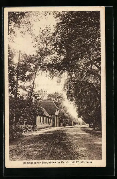 AK Paretz, Romantischer Durchblick mit Försterhaus