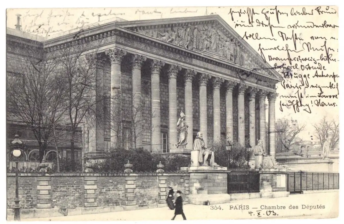 Ansichtskarte Paris Chambre des Députés Erhaltung I-II postalisch gelaufen, gestempelt: Paris Depart, 5.11.03 Verlag: keine Angaben Der