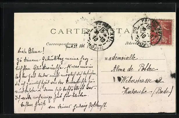 alte Ansichtskarte, gelaufen 1910, Abriebspur li. oben, Stempelspur, guter Zustand