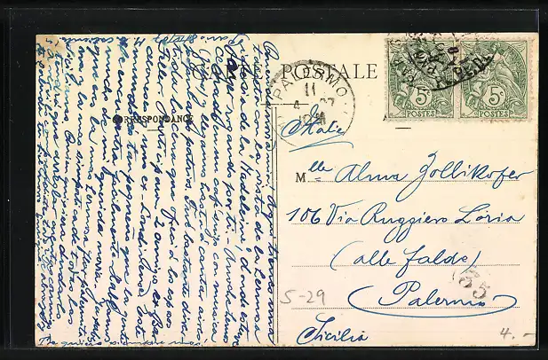 alte Ansichtskarte, gelaufen, rückseitig Klebe- und Papierreste, guter Zustand
