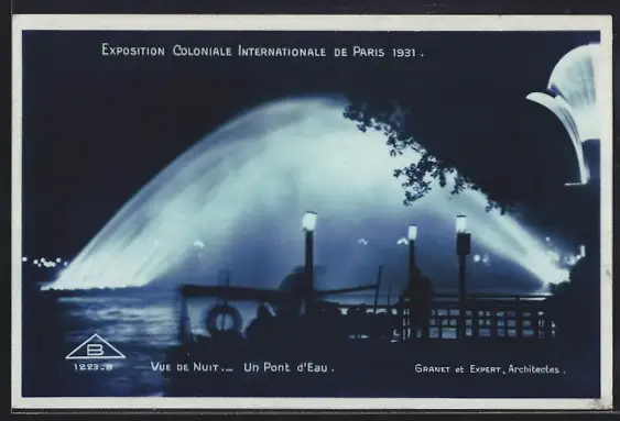AK Paris, Exposition coloniale internationale 1931, Vue de nuit, un pont d`Eau