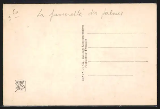 Personenbezogene Daten auf der Rückseite der Karte wurden durch blauen Textmarker unkenntlich gemacht. Die blauen Stellen sind auf die Vorderseite durchgeweicht und wirken sich negativ auf das Postkartenfoto aus