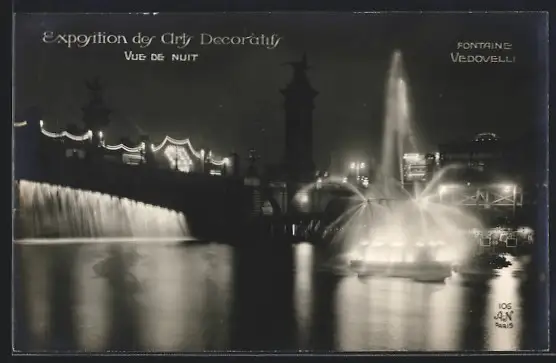 AK Paris, Exposition des Arts décoratifs 1925, Vue de Nuit, Fontaine Vedovelli