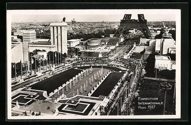 AK Paris, Exposition internationale 1937, Panorama d`Ensemble avec les Bassins du Trocadero