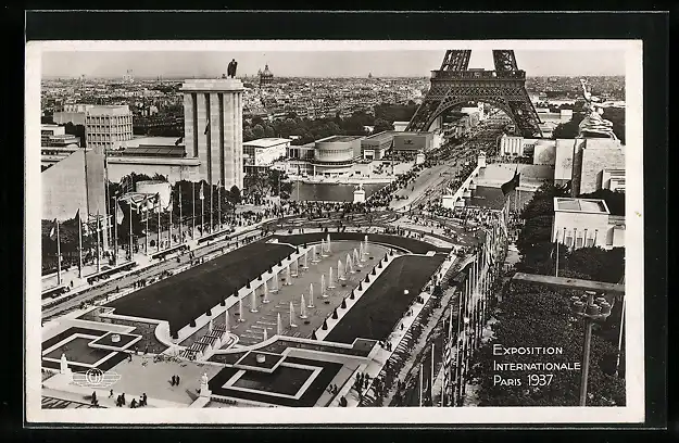 AK Paris, Exposition internationale 1937, Panorama d`Ensemble avec les Bassins du Trocadero