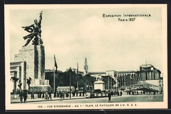 AK Paris, Exposition internationale 1937, Vue D` Ensemble-au 1. Plan, le Pavillon de L` U.S.S.R.