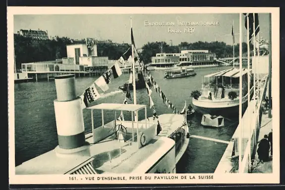 AK Paris, Exposition internationale 1937, Vue d`ensemble, prise du pavillon de la Suisse, Dampfer