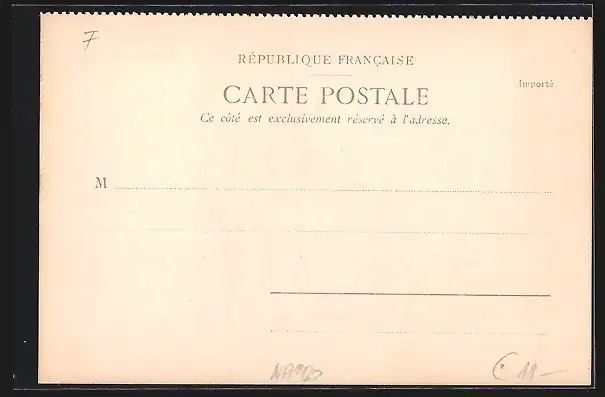 Personenbezogene Daten auf der Rückseite der Karte wurden durch blauen Textmarker unkenntlich gemacht. Die blauen Stellen sind auf die Vorderseite durchgeweicht und wirken sich negativ auf das Postkartenfoto aus