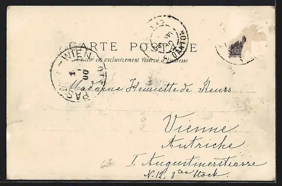 alte Ansichtskarte, gelaufen 1900, Briefmarke entfernt, rückseitig Oberflächenschaden, Stempelspur, guter Zustand