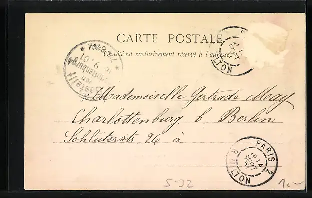 gelaufen 1901, Briefmarke entfernt, rückseitig Oberflächenschaden, guter Zustand