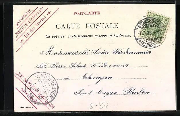 alte Ansichtskarte, gelaufen 1905, guter Zustand