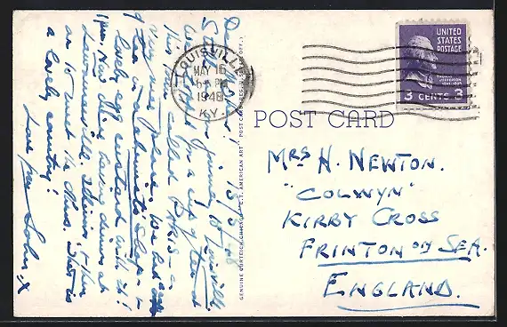 gelaufen 1948, Eckknicke li. unten und re. oben, Stempelspur, guter Zustand