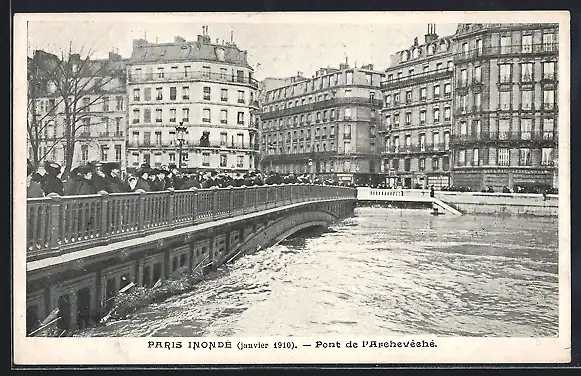 AK Paris, Inondation de janvier 1910, Pont de l`Archevêché