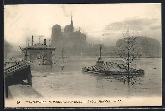 AK Paris, Inondations de janvier 1910, Le Quai Montebello