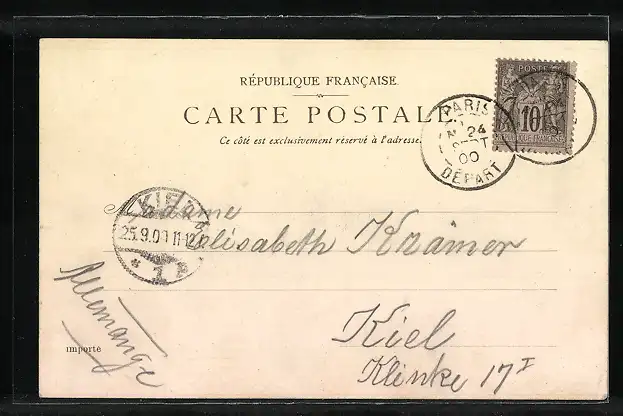 alte Ansichtskarte, gelaufen 1900, Stempelspur, guter Zustand