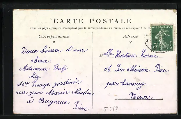 Personenbezogene Daten auf der Rückseite der Karte wurden durch blauen Textmarker unkenntlich gemacht. Die blauen Stellen sind auf die Vorderseite durchgeweicht und wirken sich negativ auf das Postkartenfoto aus