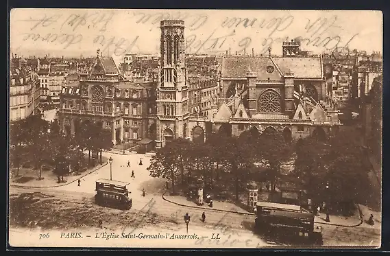 AK Paris, L`Eglise Saint-Germain-l`Auxerrois, Strassenbahn