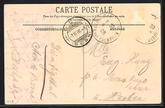 alte Ansichtskarte, gelaufen 1906, Briefmarke entfernt, rückseitig Oberflächenschaden, guter Zustand