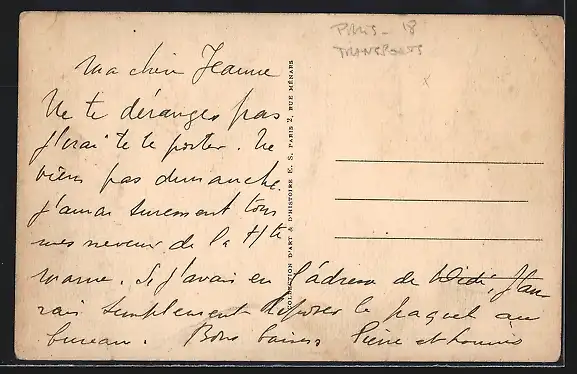 Personenbezogene Daten auf der Rückseite der Karte wurden durch blauen Textmarker unkenntlich gemacht. Die blauen Stellen sind auf die Vorderseite durchgeweicht und wirken sich negativ auf das Postkartenfoto aus