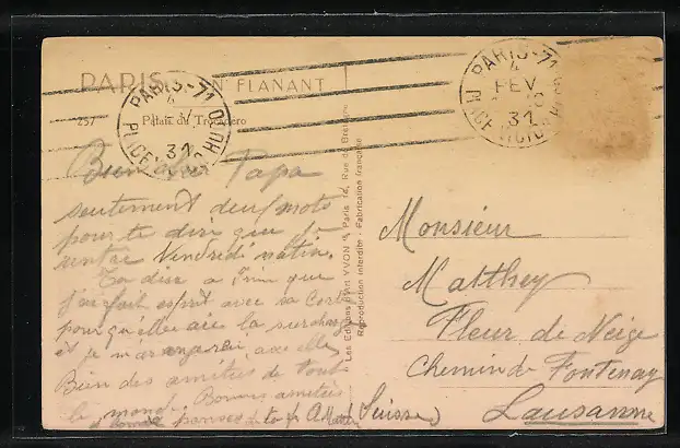 alte Ansichtskarte, gelaufen 1931, Briefmarke entfernt, Eckknicke li., Bugspur und Eckknick re. oben, guter Zustand