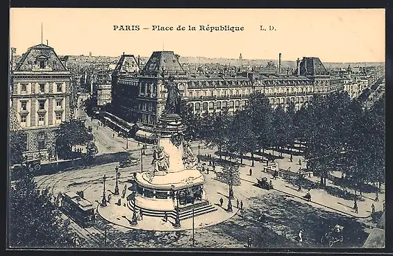 AK Paris, Place de la Rèpublique, Strassenbahn