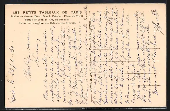 AK Paris, Statue de Jeanne d`Arc, Mona