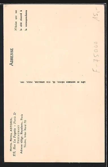 AK Paris X, Hotel Royal Astoria, 173, Rue la Fayette