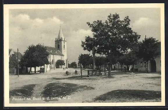AK Parndorf bei Bruck, Ortspartie mit Kirche