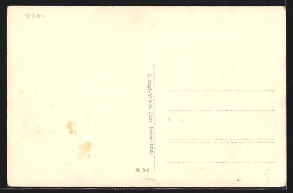Personenbezogene Daten auf der Rückseite der Karte wurden durch blauen Textmarker unkenntlich gemacht. Die blauen Stellen sind auf die Vorderseite durchgeweicht und wirken sich negativ auf das Postkartenfoto aus