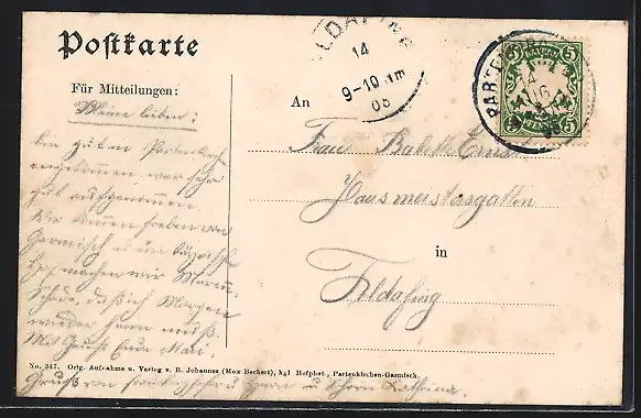 alte Ansichtskarte, gelaufen 1905, guter Zustand