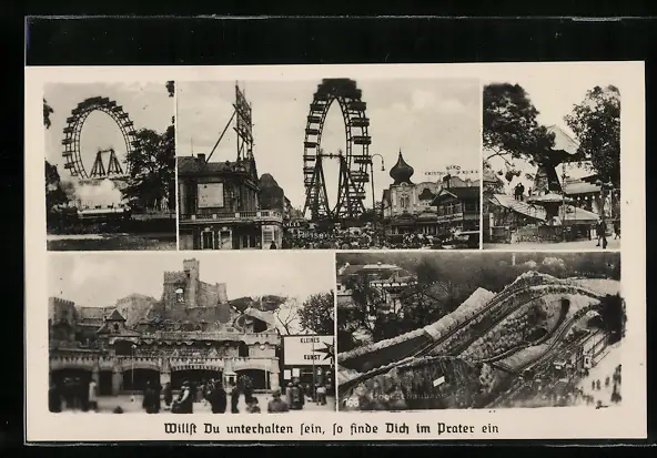 AK Partien vom Wiener Prater, Riesenrad und Hochschaubahn