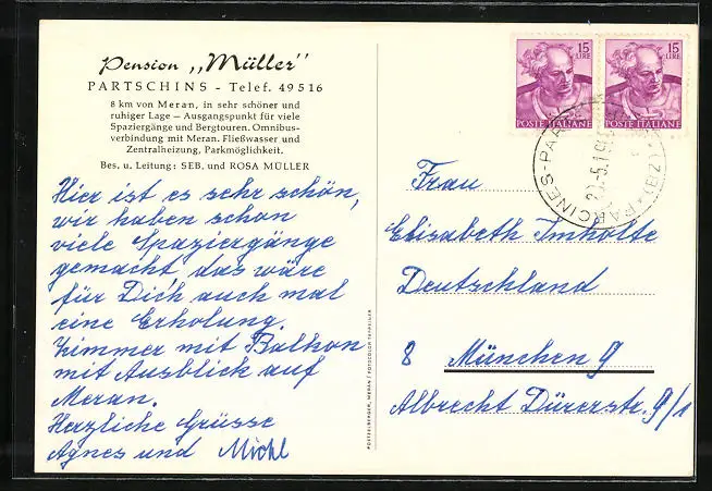 AK Partschins bei Meran, Pension Müller, Totalansicht