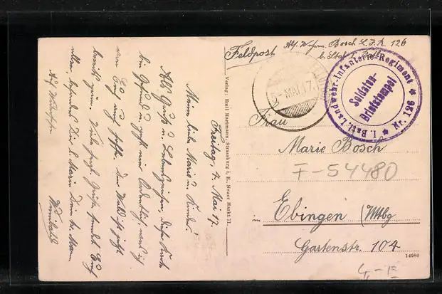 alte Ansichtskarte, gelaufen 1917 als Feldpost, guter Zustand
