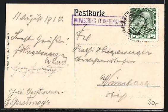 AK Pasching /Ob. Oest., Ortspartien und Kirche
