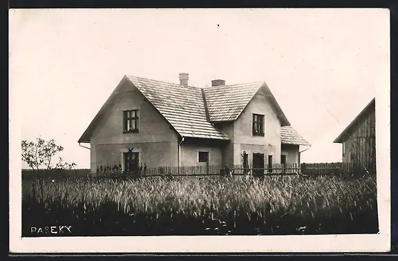 AK Paseky, Ansicht eines Wohnhauses mit Scheune